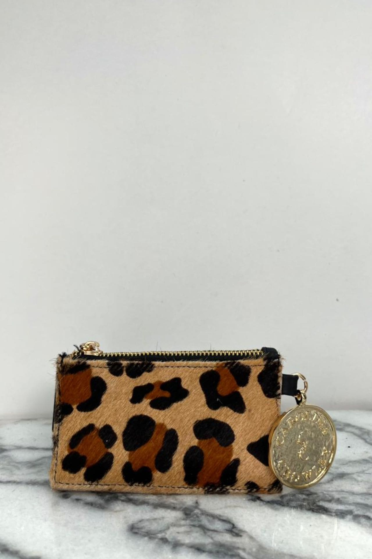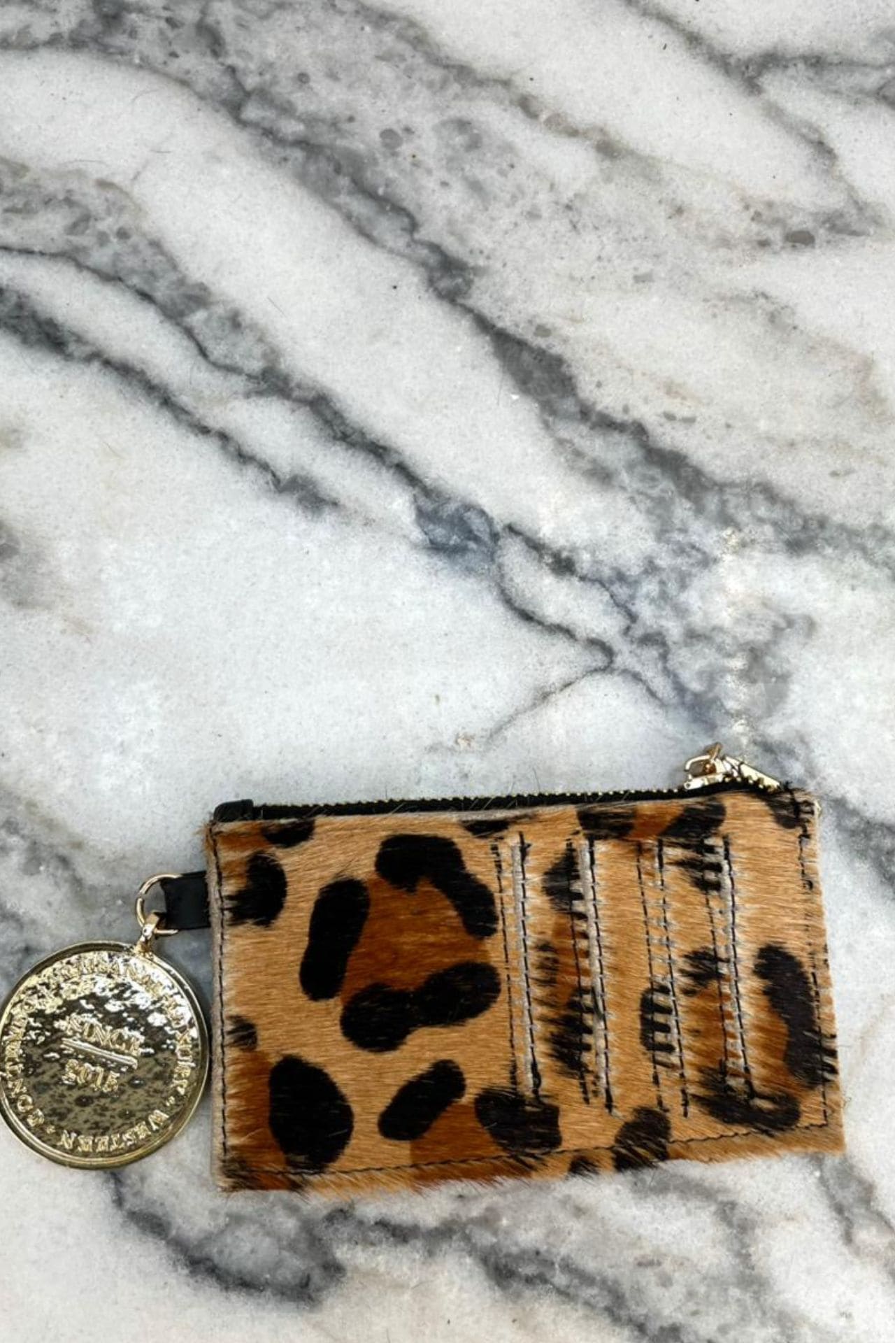 Tarjetero de pelo de vaca con estampado cheetah, cuenta con 4 compartimentos para tarjetas y un bolsillo con cierre para usarlo como monedero . Es un accesorio muy práctico que podrás llevar en todos tus bolsos.